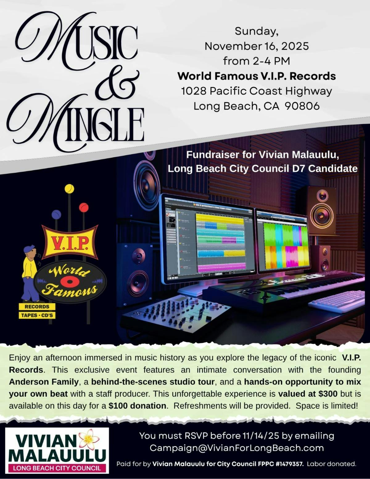 On Sunday, November 16th, we will gather at the World Famous V.I.P. Records — a landmark not only in Long Beach history, but in music history. This is not just a location. It is a cultural institution where creativity, identity, and community come together to influence the world.